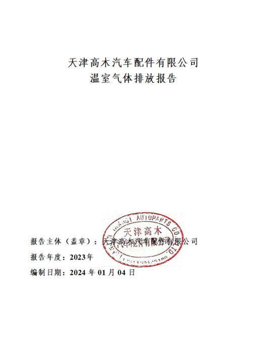 天津高木汽車(chē)配件有限公司2023年度溫室氣體排放報(bào)告